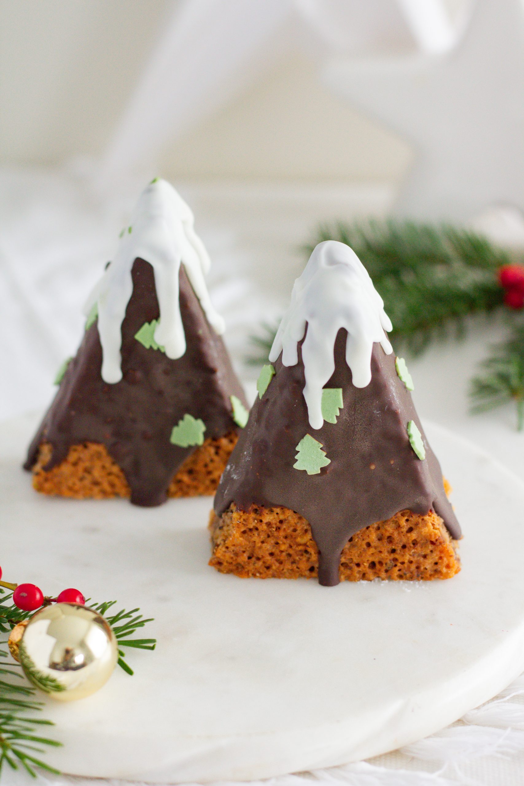 Dieses süße Tännchen ist mit einer Nussmasse aus Mandeln, Erdnüssen und Haselnüssen gefüllt und nach Konditorenhandwerk mit  Zartbitter- und weißer Kuvertüre überzogen.